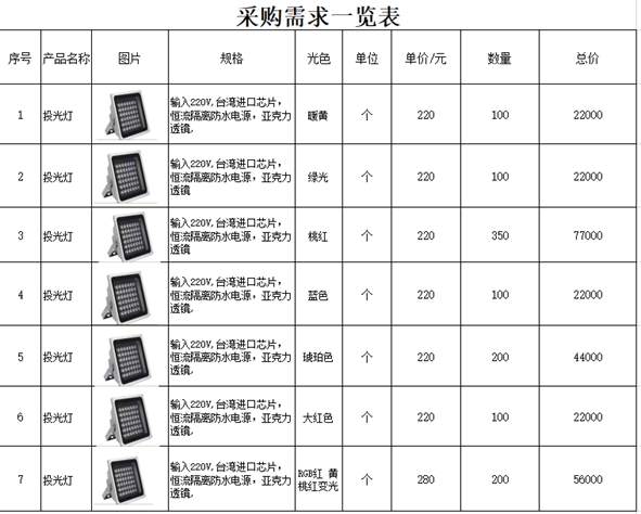 项目名称:西区夜游设施建设工程投光灯采购